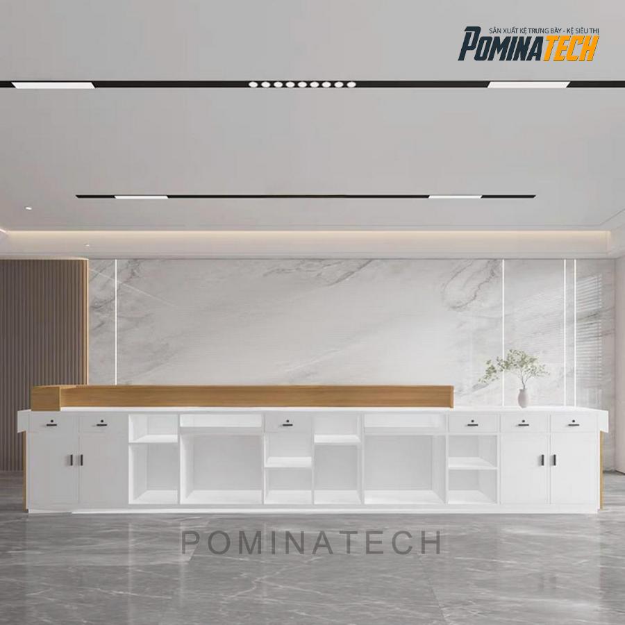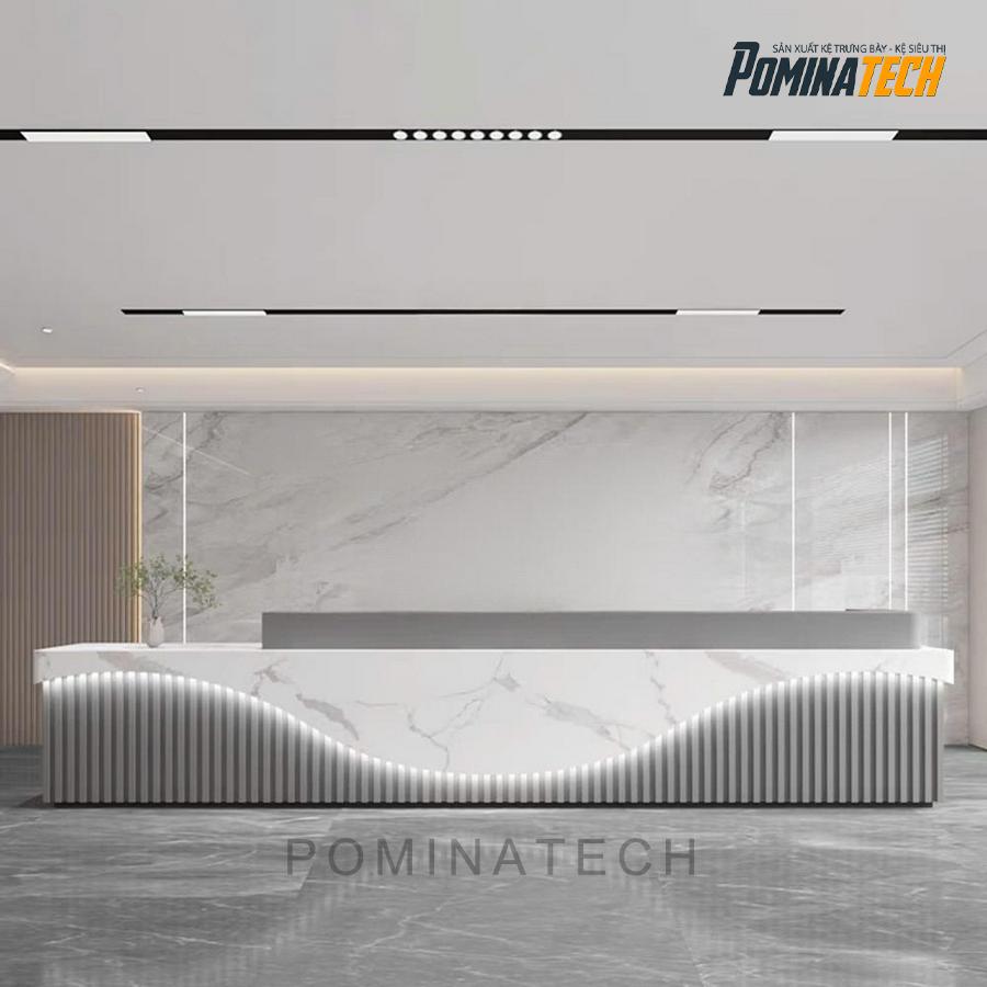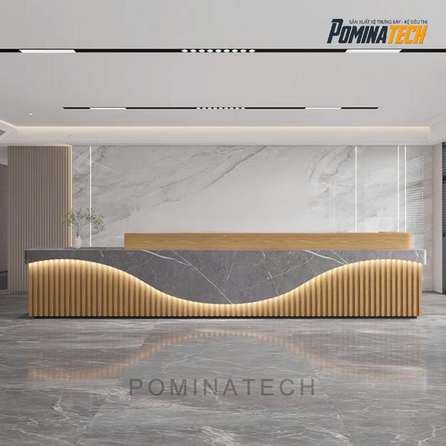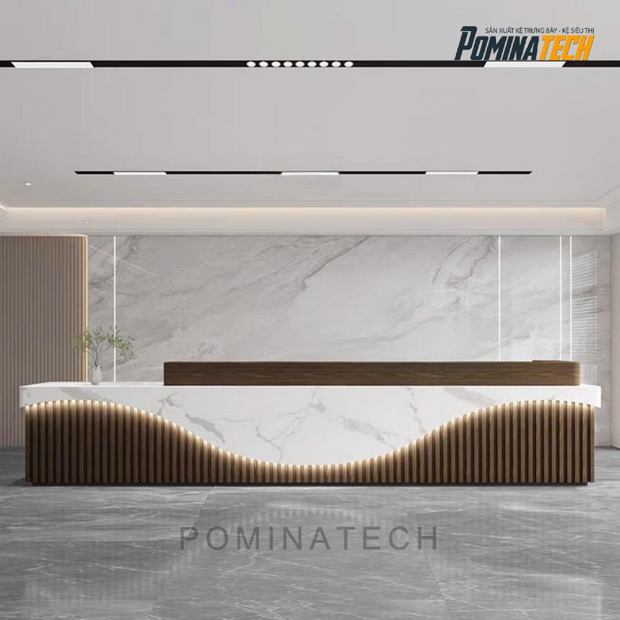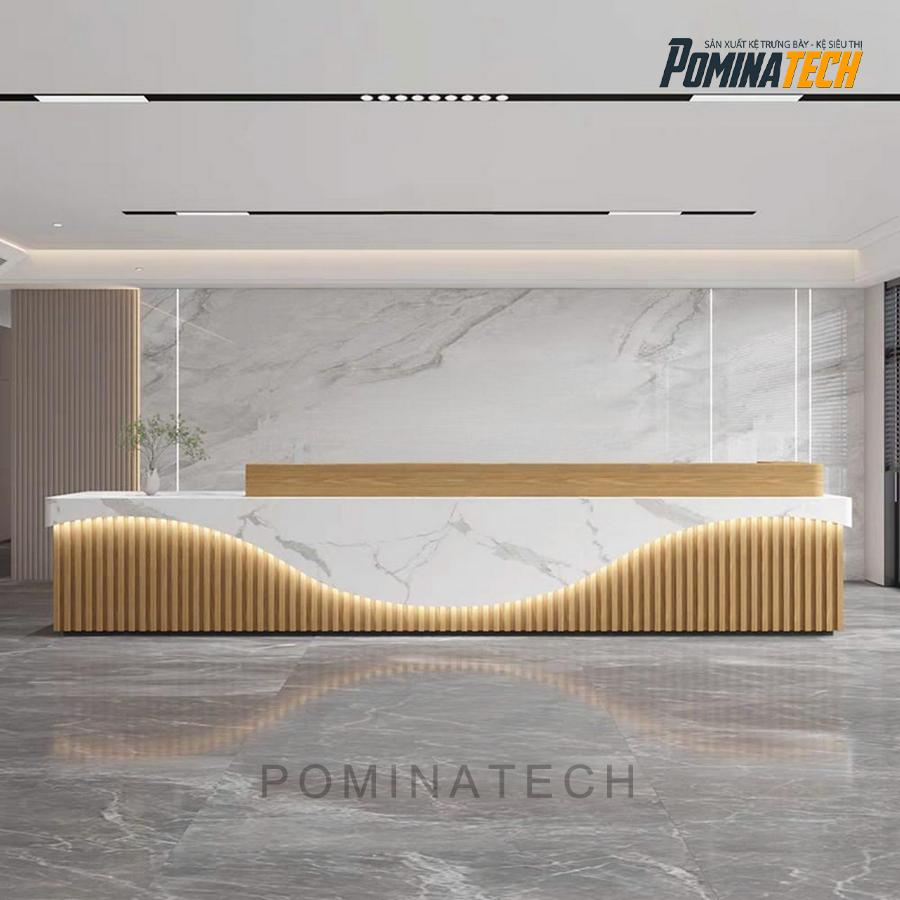 Quầy Lễ Tân Văn Phòng Gỗ MDF Đẹp – Kiểu Dáng Uốn Lượn, Ánh Sáng LED Hiện Đại