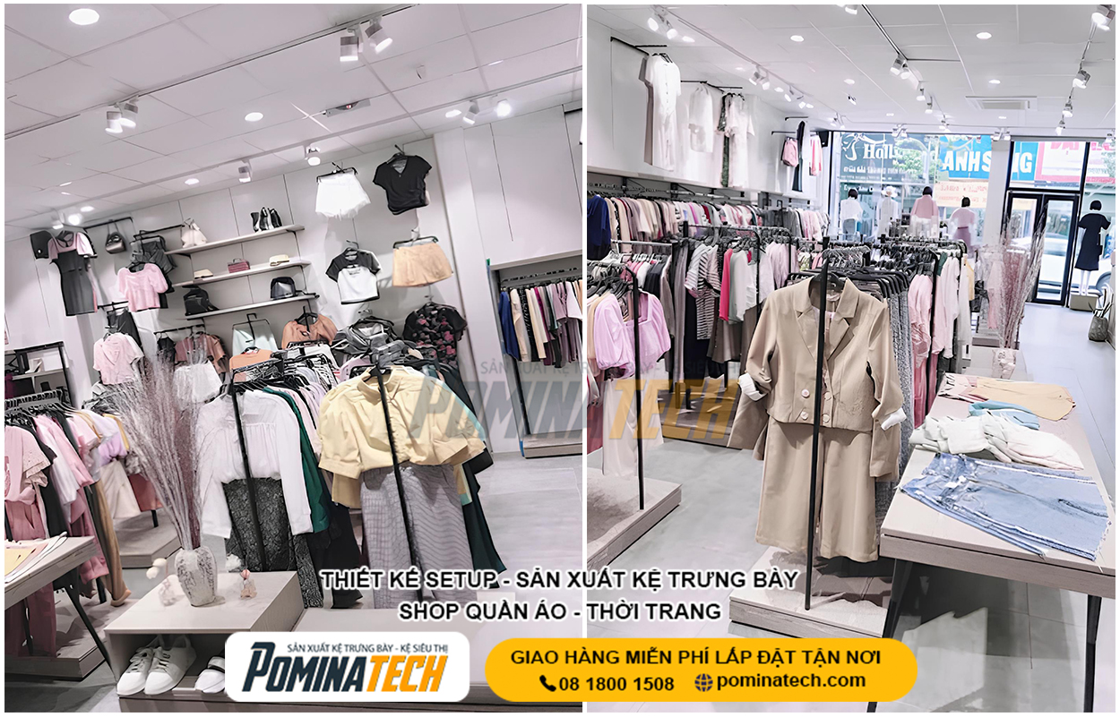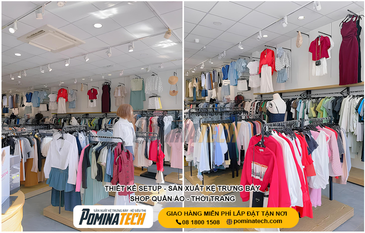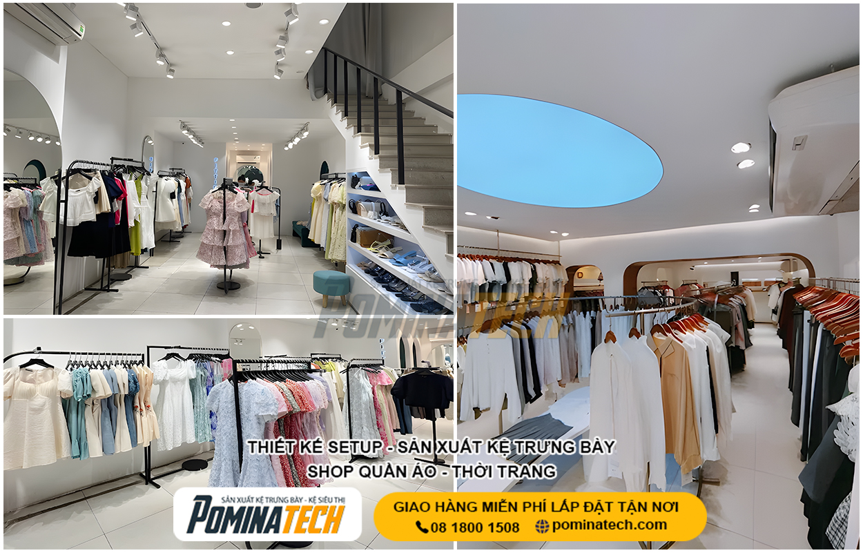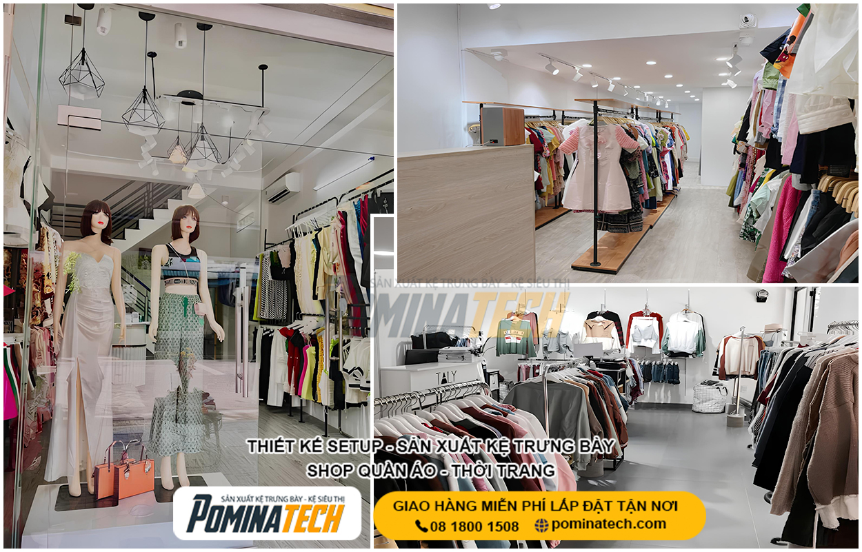 Thiết Kế Cửa Hàng Thời Trang chuyên nghiệp giúp tối ưu không gian trưng bày, nâng cao trải nghiệm mua sắm và tăng doanh thu bán hàng. POMINATECH cung cấp giải pháp thiết kế – thi công cửa hàng thời trang trọn gói, kệ trưng bày bền đẹp, phù hợp mọi diện tích và mô hình kinh doanh.