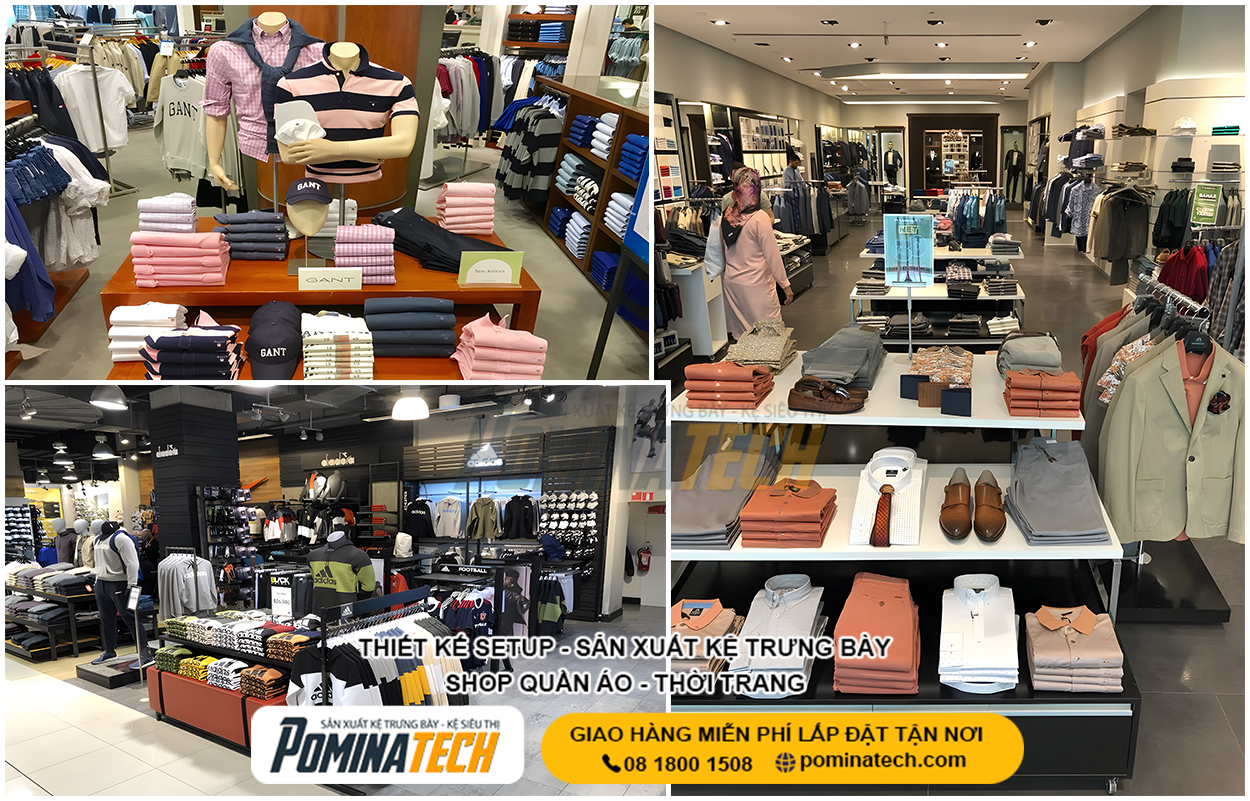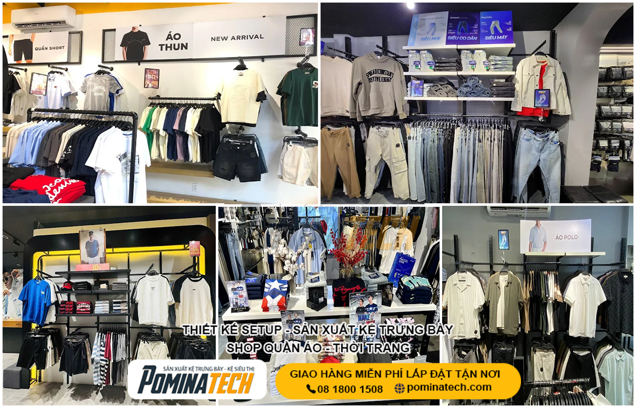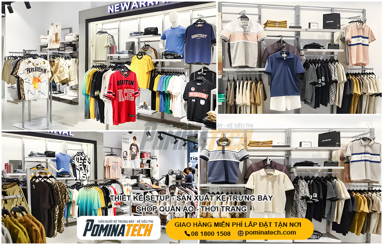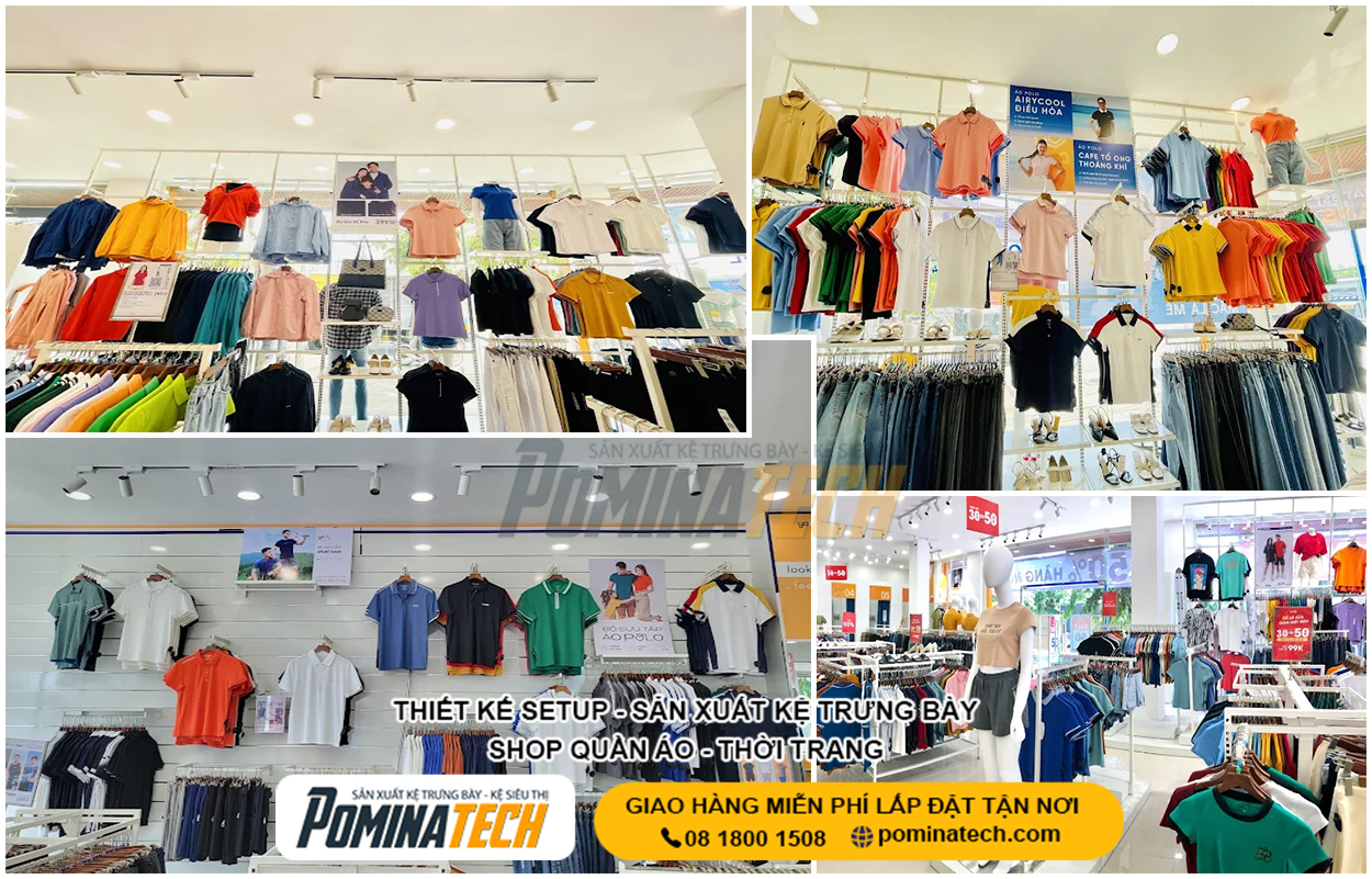 Thiết Kế Cửa Hàng Thời Trang chuyên nghiệp giúp tối ưu không gian trưng bày, nâng cao trải nghiệm mua sắm và tăng doanh thu bán hàng. POMINATECH cung cấp giải pháp thiết kế – thi công cửa hàng thời trang trọn gói, kệ trưng bày bền đẹp, phù hợp mọi diện tích và mô hình kinh doanh.