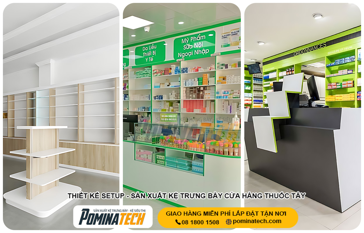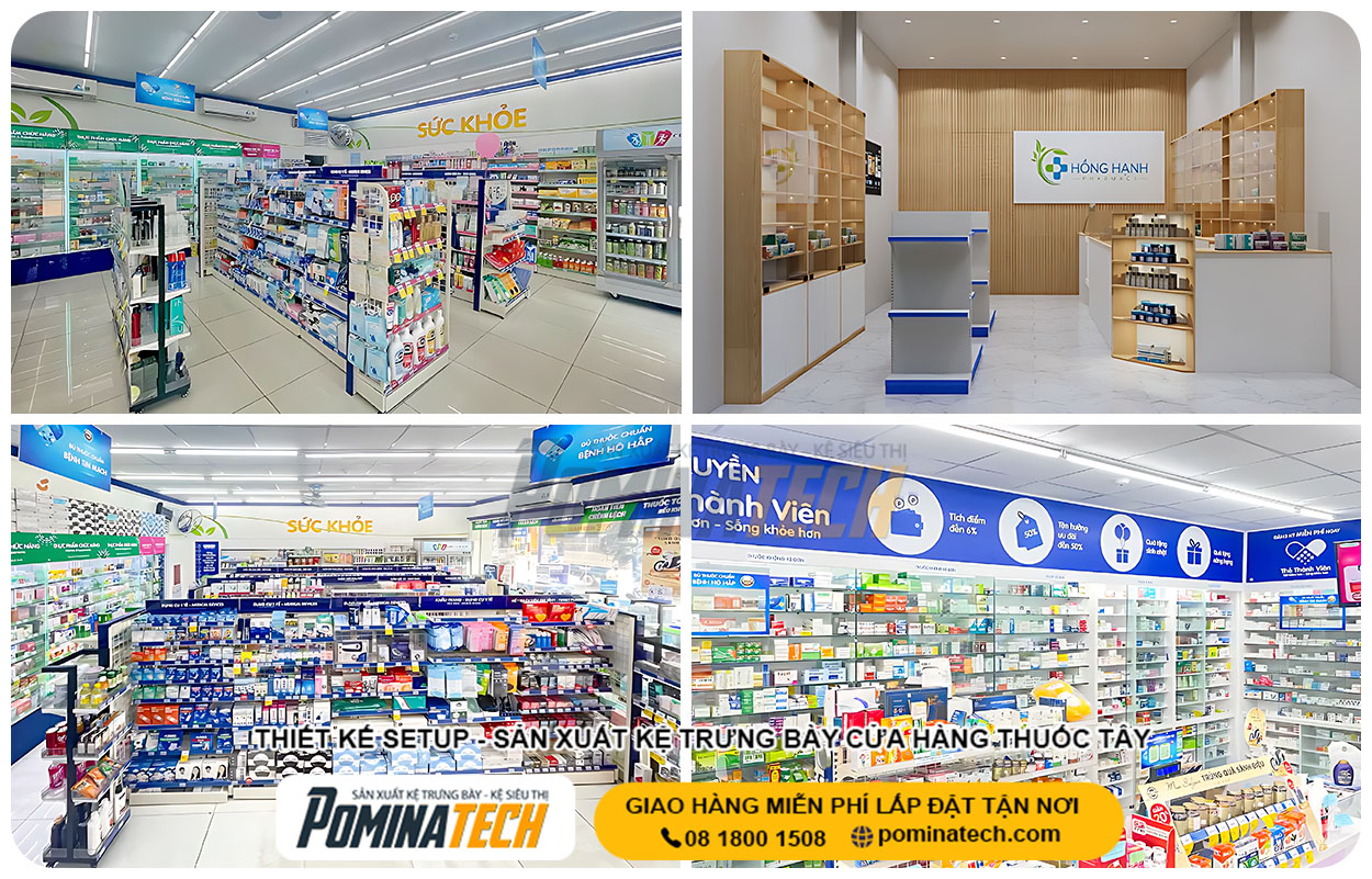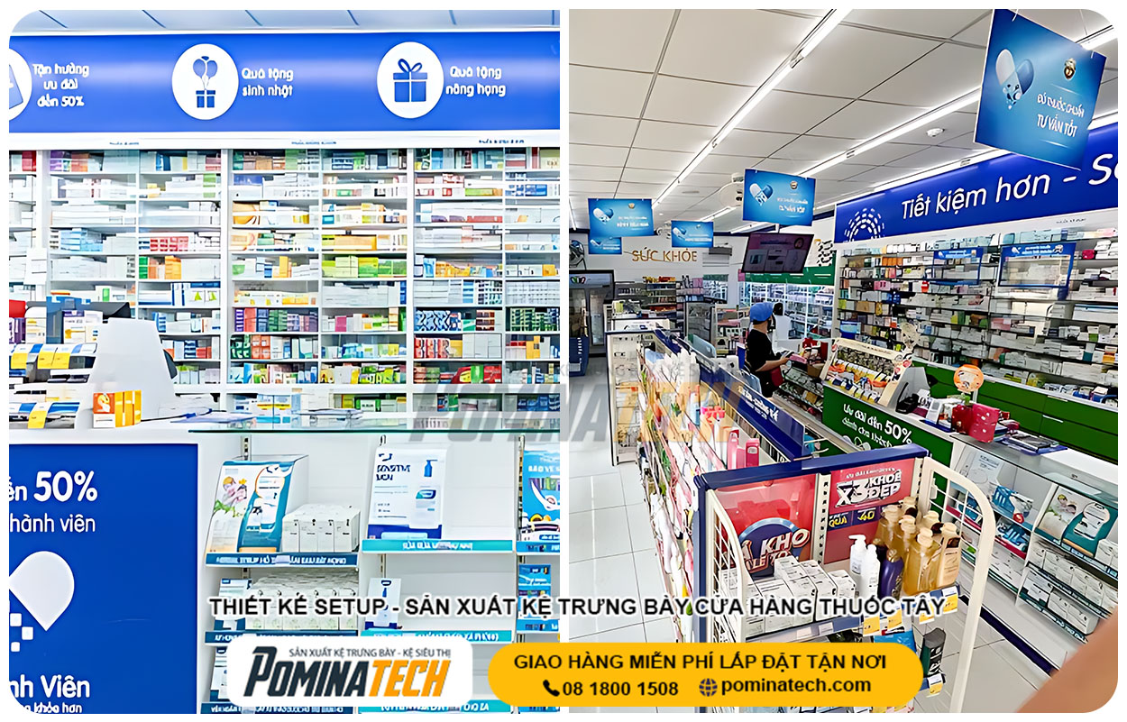 POMINATECH – Giải pháp trọn gói cho Kệ Trưng Bày – Kệ Trưng Bày Thuốc Tây