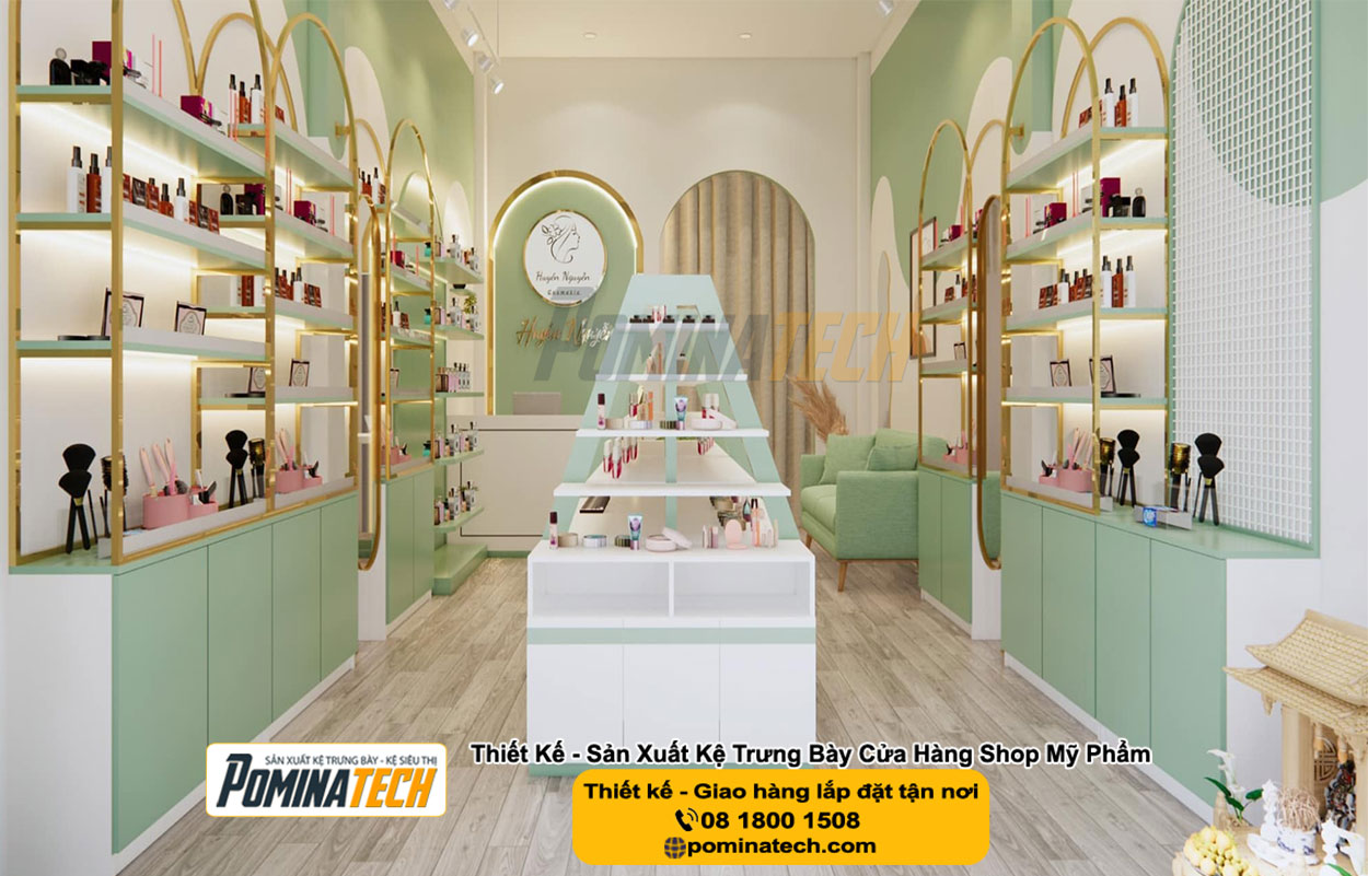 - Dịch vụ trọn gói: Tư vấn – Thiết kế – Setup mở cửa hàng mỹ phẩm chuyên nghiệp