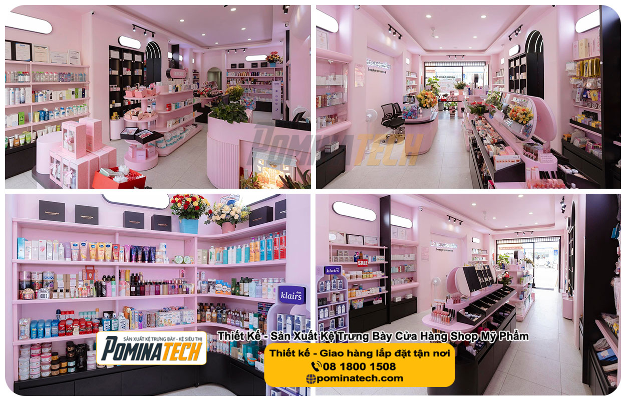 sản phẩm với đa dạng mẫu mã, kích thước linh hoạt, phù hợp với mọi nhu cầu của khách hàng. - Dịch vụ trọn gói: Tư vấn – Thiết kế – Setup mở cửa hàng mỹ phẩm chuyên nghiệp