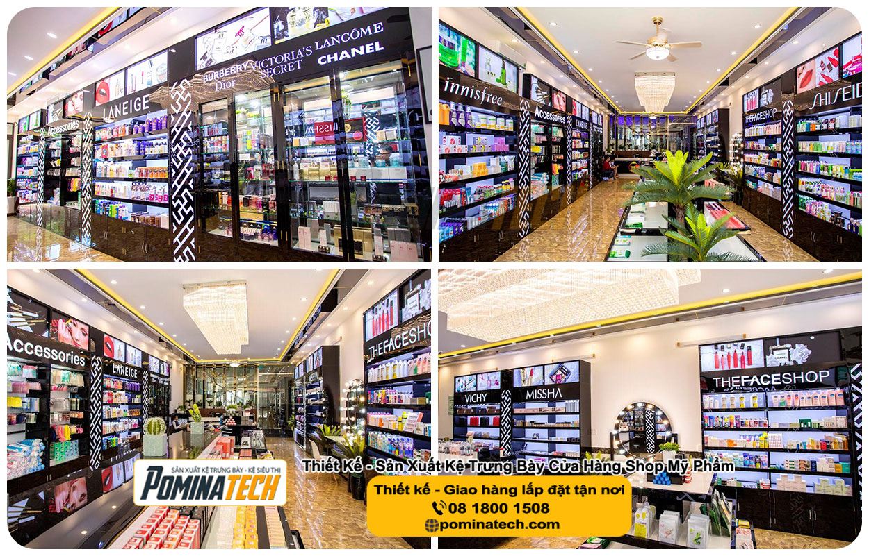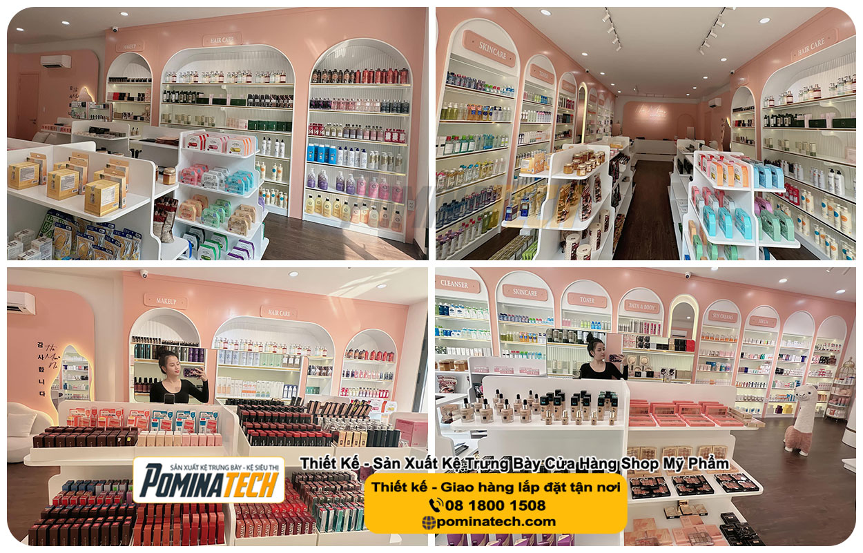 sản phẩm với đa dạng mẫu mã, kích thước linh hoạt, phù hợp với mọi nhu cầu của khách hàng. - Dịch vụ trọn gói: Tư vấn – Thiết kế – Setup mở cửa hàng mỹ phẩm chuyên nghiệp
