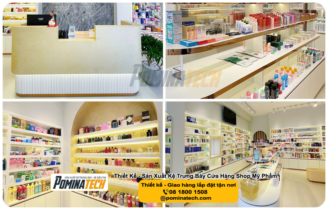 sản phẩm với đa dạng mẫu mã, kích thước linh hoạt, phù hợp với mọi nhu cầu của khách hàng. - Dịch vụ trọn gói: Tư vấn – Thiết kế – Setup mở cửa hàng mỹ phẩm chuyên nghiệp