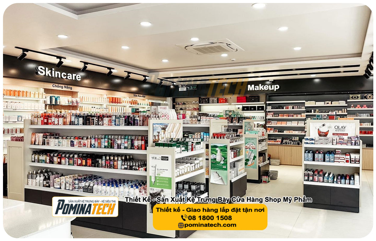 sản phẩm với đa dạng mẫu mã, kích thước linh hoạt, phù hợp với mọi nhu cầu của khách hàng. - Dịch vụ trọn gói: Tư vấn – Thiết kế – Setup mở cửa hàng mỹ phẩm chuyên nghiệp