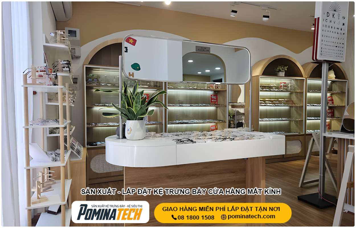 Thiết Kế Thi Công Cửa Hàng Mắt Kính Tại P. Duyên Hải Vĩnh Long mang đến giải pháp không gian bán hàng hiện đại, bố trí khoa học và tối ưu chi phí đầu tư. Thiết kế thẩm mỹ cao, kệ trưng bày hợp lý giúp sản phẩm nổi bật và dễ thu hút khách hàng. Thi công nhanh, đúng tiến độ, bảo hành rõ ràng. Liên hệ ngay để sở hữu cửa hàng mắt kính chuyên nghiệp, gia tăng doanh thu bền vững.