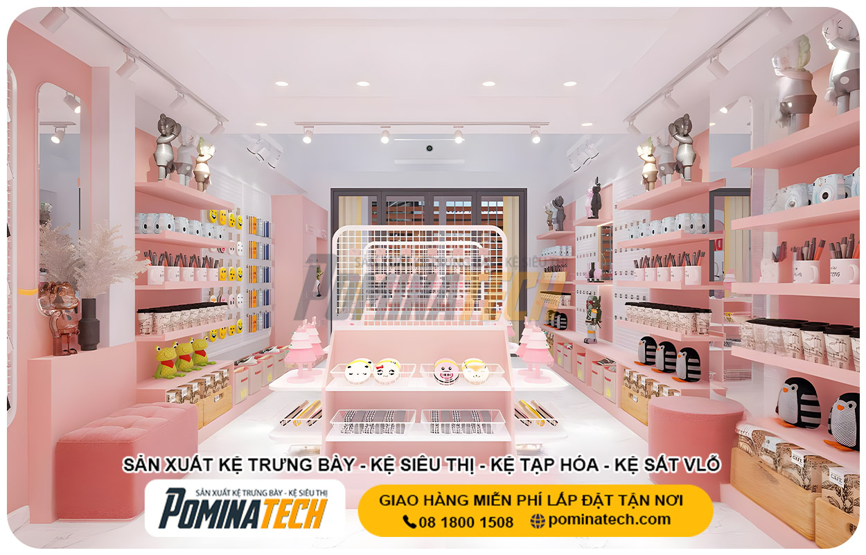 Nếu bạn đang cần tìm xưởng sản xuất kệ trưng bày chất lượng – giá rẻ – thiết kế theo yêu cầu, POMINATECH luôn sẵn sàng hỗ trợ:
