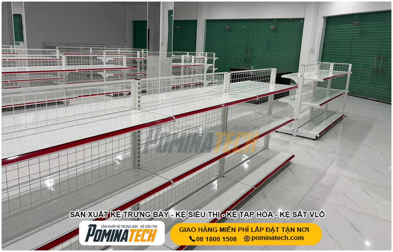 | ✅ Sản phẩm Kệ Siêu Thị, Kệ Trưng Bày, Kệ Kho | ⭕ POMINATECH chuyên sản xuất các loại kệ Siêu Thị, Kệ Trưng Bày, Kệ Kho, Kệ Trang Trí, Quầy Thanh Toán. Sản phẩm của chúng tôi được thiết kế và sản xuất với chất liệu bền đẹp, tối ưu không gian trưng bày và lưu trữ cho mọi cửa hàng, siêu thị và doanh nghiệp. |