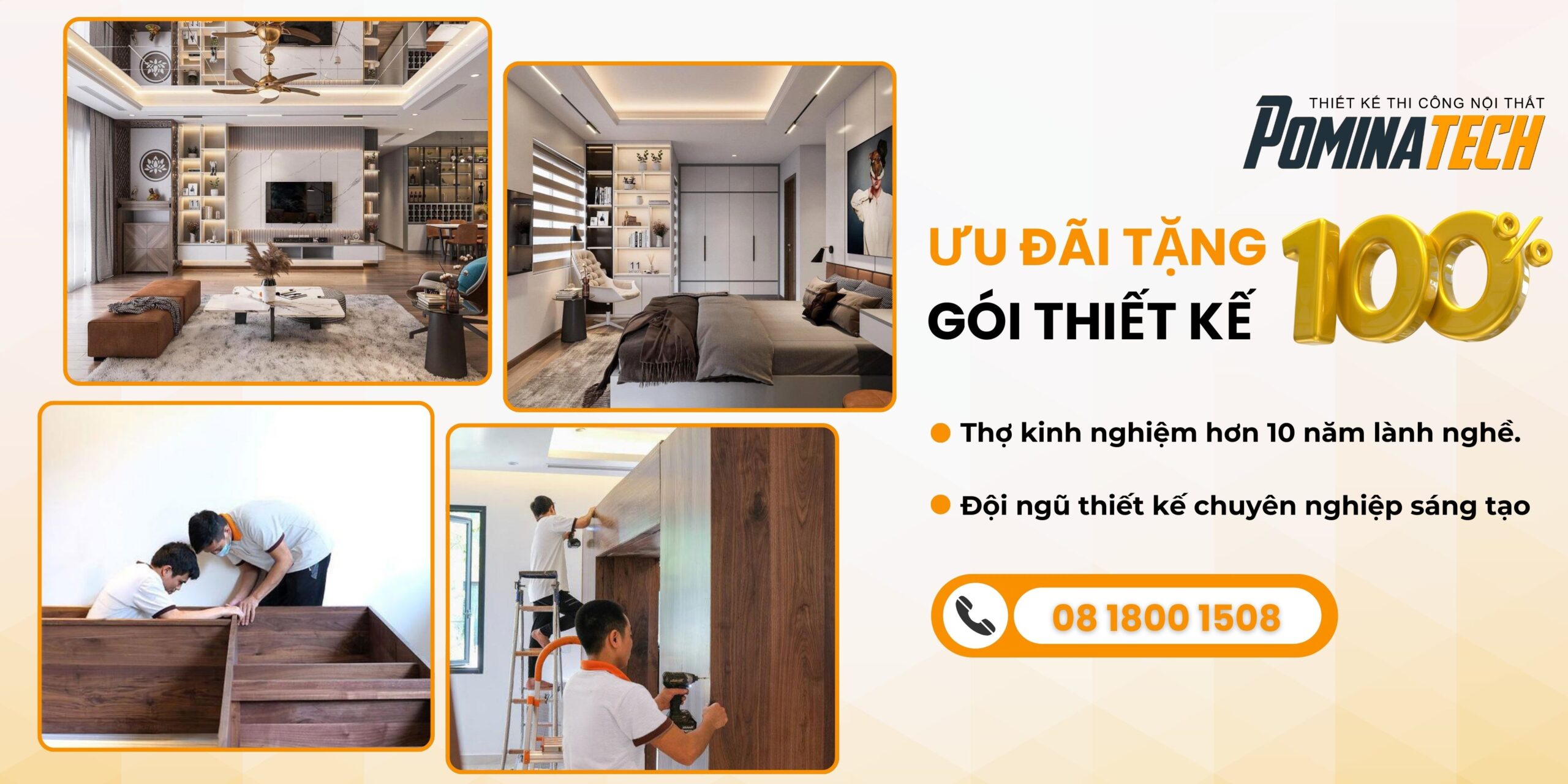 POMINATECH cung cấp dịch vụ thi công nội thất trọn gói từ A – Z: khảo sát, tư vấn, thiết kế 3D, sản xuất tại xưởng, lắp đặt tận nơi và bàn giao hoàn thiện. Khách hàng chỉ cần chia sẻ nhu cầu, đội ngũ sẽ lo toàn bộ, đảm bảo tiết kiệm thời gian, chi phí và đồng bộ chất lượng.